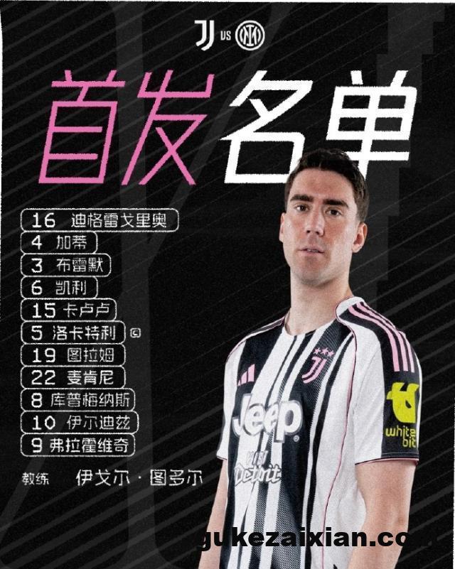 尤文图斯阵容(3421):迪格雷戈里奥/加蒂(79’乔纳森·戴维)、布雷默、凯利/卡卢卢、洛卡特利(73’卡瓦尔)、赫夫朗·图拉姆、麦肯尼(79’若昂·马里奥)/科普迈纳斯(74’阿季奇)、耶尔德兹/弗拉霍维奇(74’奥彭达)