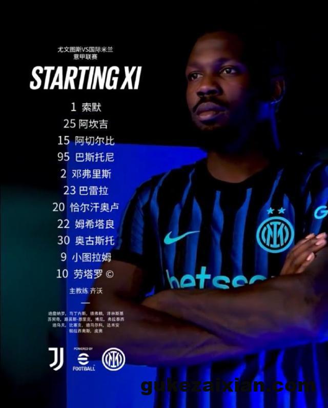 国际米兰阵容(352):佐默/阿坎吉、阿切尔比、巴斯托尼/邓弗里斯(77’达米安)、巴雷拉(64’杰林斯基)、恰尔汗奥卢(81’苏契奇)、姆希塔良、奥古斯托(64’迪马尔科)/马库斯·图拉姆、劳塔罗(64’博尼)