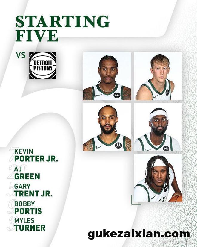 雄鹿:字母哥与库兹马缺席,格林格林三分5中5与罚球7中7得到22分,波蒂斯11分,波特4中4得到10分。