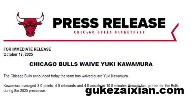 北京时间10月18日,公牛队官方宣布,球队已经裁掉了日本后卫河村勇辉。河村勇辉目前仍受右小腿疼痛困扰,未出战公牛队季前赛最后三场比赛。如今被裁后,他需另寻其他加盟机会。2025年季前赛期间,河村勇辉代表公牛队出战2场比赛,场均登场10.8分钟,能得到3.0分、4.0个篮板和4.0次助攻。