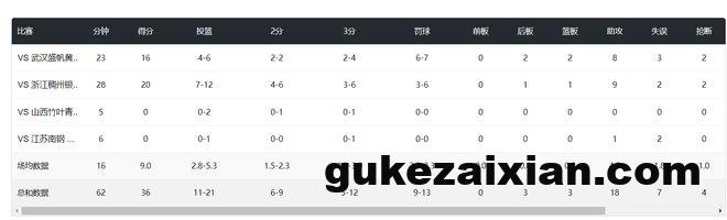 全场比赛,王思雨16分6助攻2抢断;韩旭26分6篮板1助攻1抢断;贾赛琪11分3篮板3助攻;高颂16分9篮板4助攻;
