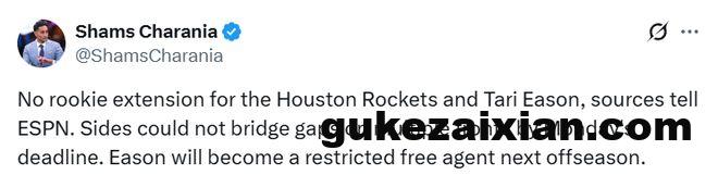 北京时间10月21日,据名记Shams报道,火箭和伊森最终没能达成续约协议,这也意味着伊森将在明年夏天成为受限制自由球员。