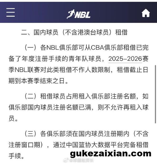 新赛季,NBL可以从CBA俱乐部青年队租借球员,不限租借人数,但计入注册名额。