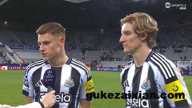 欧冠联赛阶段第3轮一场较量,纽卡斯尔联主场3-0完胜本菲卡。赛后,进球功臣安东尼-戈登和哈维-巴恩斯在场边接受了TNT体育的采访。