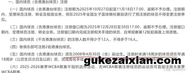 不过,遗憾的是,从篮协这一次新赛季规定来看,他们并没有更改的意思,WCBA新赛季依旧要达到年满18岁,才可以登场比赛。即2008年4月30日以前出生的球员,才允许被注册成功。而2008年5月份以后出生的球员,他们则无法被注册。另外,即便是2008年4月30日以前出生的球员,他们想要登场比赛,也需等到年满18岁,才可以正式注册成功。