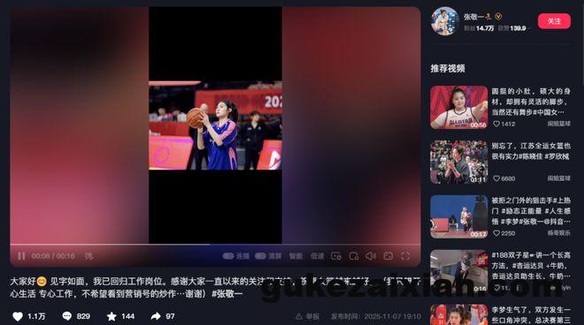 北京时间11月9日,“中国女库里”张敬一通过社媒官宣,她已经告别WCBA赛场,重返北师大工作岗位,并且感谢大家一直以来的关注和支持,她曾经在WCBA赛场有过单场命中16记三分轰下50分的表现。