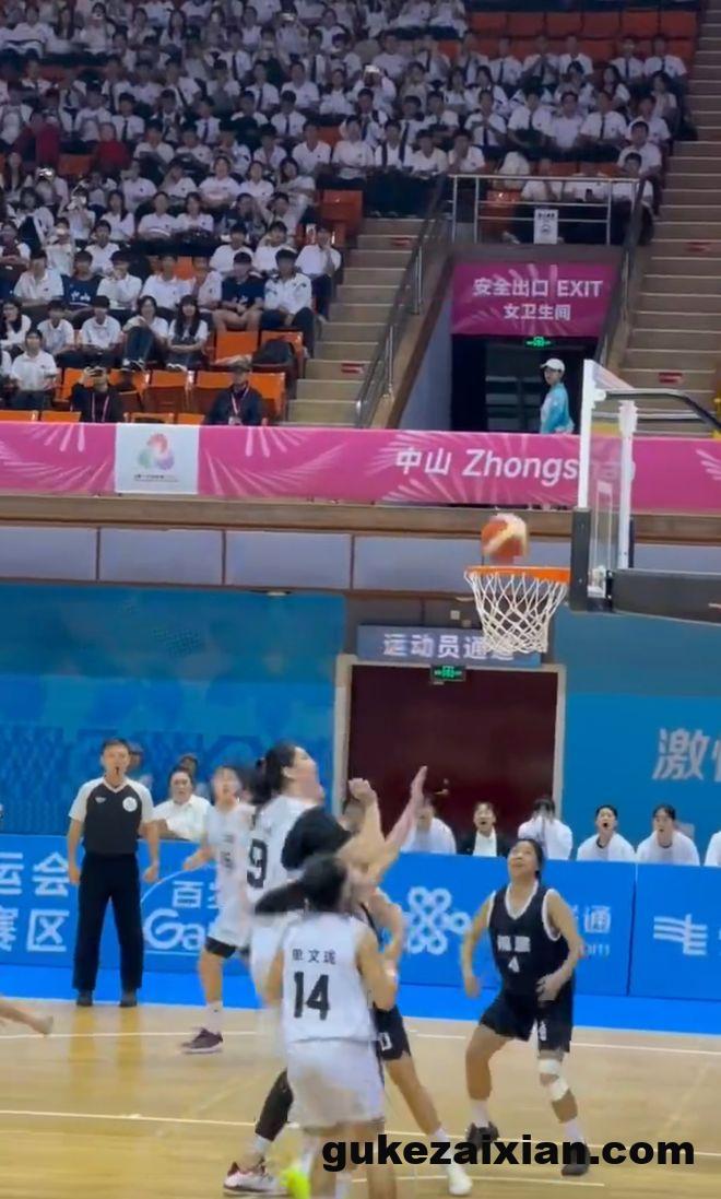 11月8日,广东广州,全运会篮球小组赛女篮U18级别山东队和重庆队的比赛中,2米26“女姚明”张子宇在全运会女篮正赛里完成了扣篮。