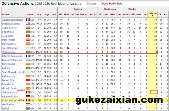 另外还有一个数据,就是姆巴佩本赛季西甲前11轮踢完后,他的抢断和拦截数据依旧是0。要知道哪怕是皇马的门将库尔图瓦,都比姆巴佩多贡献了1次抢断。皇马全队只有3人攻防数据贡献为0,其他两位是出场54分钟的阿拉巴和出场不到10分钟的恩德里克。