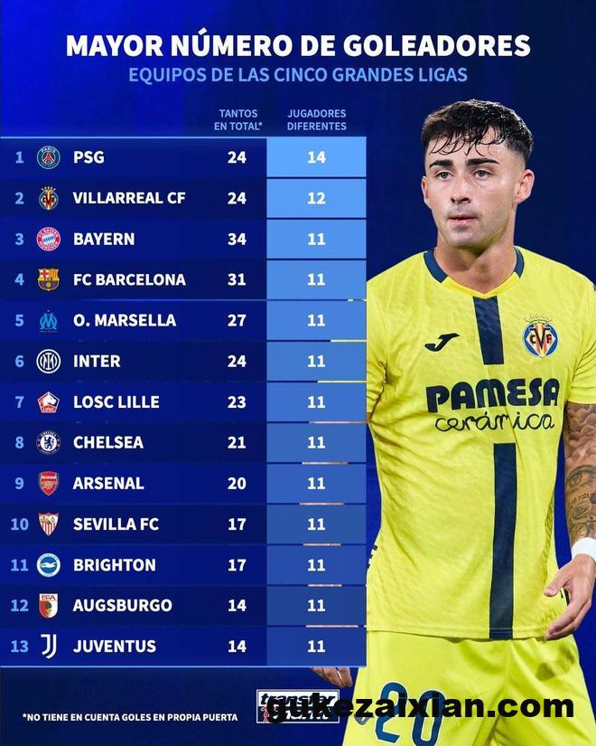 2对“德转列本赛季五大联赛进球人数最多球队:巴黎14人进24球第1”的想法