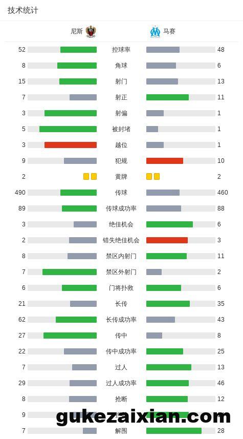 第33分钟,尼斯解围不远,格林伍德射门折射后入网,马赛2-0