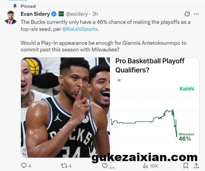 北京时间11月26日凌晨,埃文-斯迪瑞再度发文,根据KalshiSports 的数据。目前排名东部第九的雄鹿进入东部前六的概率只有46%(不打附加赛)。如果扬尼斯在季后赛中再登场一次这是否足以让他决定留守密尔沃基呢?