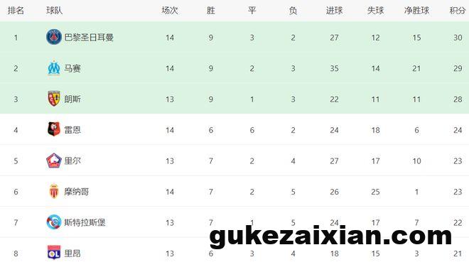 在积分榜上,巴黎圣日耳曼依然占据榜首位置,总积分是30分。马赛没能利用巴黎圣日耳曼掉链子的机会登顶,有些可惜。马赛总积分29分,以1分之差排名第2。第3的是朗斯,拿到28分。没想到法甲的冠军争夺也变得如此激烈。巴黎圣日耳曼的卫冕难度看起来不小。雷恩以24分排第4。第5的是里尔,拿到23分。摩纳哥也是23分,排名第6。