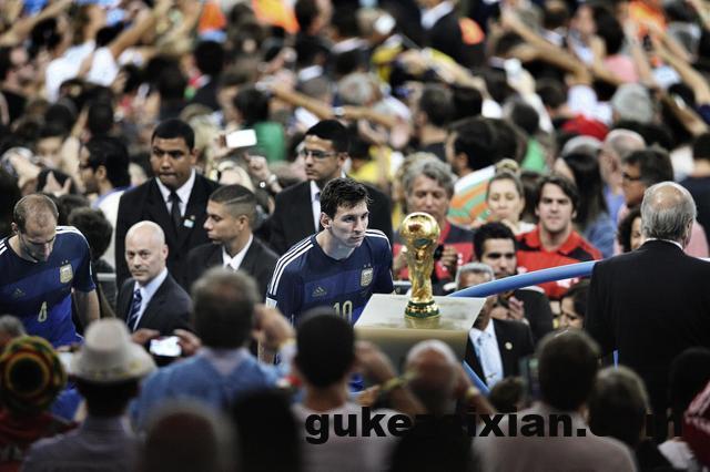 2014年7月13日,巴西世界杯决赛,阿根廷0-1不敌德国无缘冠军。赛后在登上领奖台时,梅西从大力神杯身边走过,那一刻,大力神杯近在咫尺,却无法触及。