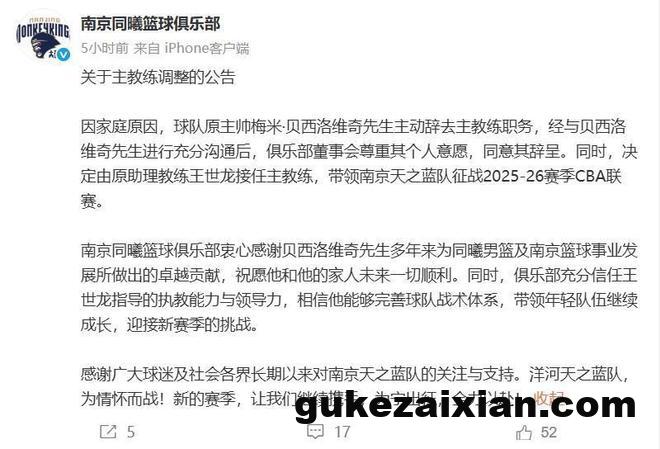 CBA新赛季还未开始,就已经有球队的主教练下课了。没错,就是那个网红球队南京同曦队。上赛季常规赛刚打没几场比赛,球队的主教练西热力江宣布辞职离队,随后外籍助教贝西洛维奇成为球队的主教练,并且带领球队首次进入季后赛。不过这段时间因为同曦队在俱乐部杯赛上遭遇三连败,贝帅被迫辞职,助理教练王世龙接棒成为同曦队新任主教练。