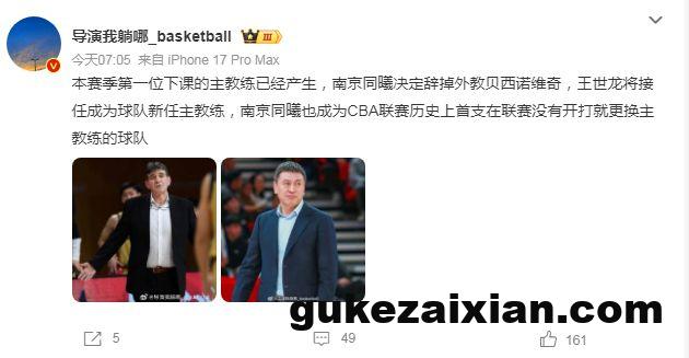 北京时间12月9日,2025-26赛季的CBA新赛季尚未开始,如今根据国内媒体与媒体人报道,因为在CBA俱乐部杯表现不佳与难以有效调整,同曦男篮洋帅贝西洛维奇将被辞掉,前浙江男篮获得过最佳主教练奖的王世龙将接任成为主教练,同曦男篮成为CBA历史首支在新赛季尚未开始就换帅的球队。
