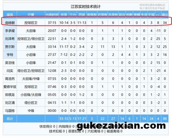 全场比赛,庞峥麟一共打了37分钟,投篮14中10,命中率达到了71.4%,其中,三分球5投3中,罚球13中11,砍下了34分6篮板4助攻1抢断!其中,34分也是继续刷新了他CBA职业生涯的得分 新高,在此前,他面对上海队的时候,砍下了32分。