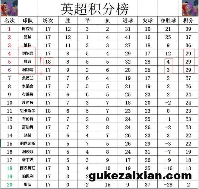 积分榜方面,英超现在形成了争冠和争4的两个阶队,阿森纳,曼城,维拉是争冠第一阶队,阿森纳多曼城2分,多维拉3分继续领跑。争4的第2阶队竞争更激烈,曼联今天小胜止住2轮不胜的颓势后,追上切尔西和利物浦,三队同积29分,曼联凭借1个净胜球的优势暂时超过利物浦升至第5。
