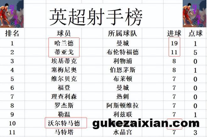 射手榜方面,哈兰德19球高居榜首,蒂亚戈11球位列第2,埃基蒂克和塞梅尼奥8球并列第3。沃尔特马德今天无力破门,还是和福登,理查利森等人7球刚好挤入前十。