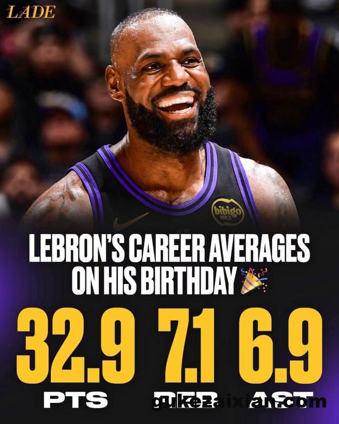 詹姆斯正式年满41周岁,作为现役最老的球员依然肩负率领湖人前进的重任。在詹姆斯生涯前10次NBA生日之战,他场均得到32.9分成为NBA生日夜场均得分最高的球员,力压威尔金斯场均32.7分与库里、奥尼尔场均29.4分。