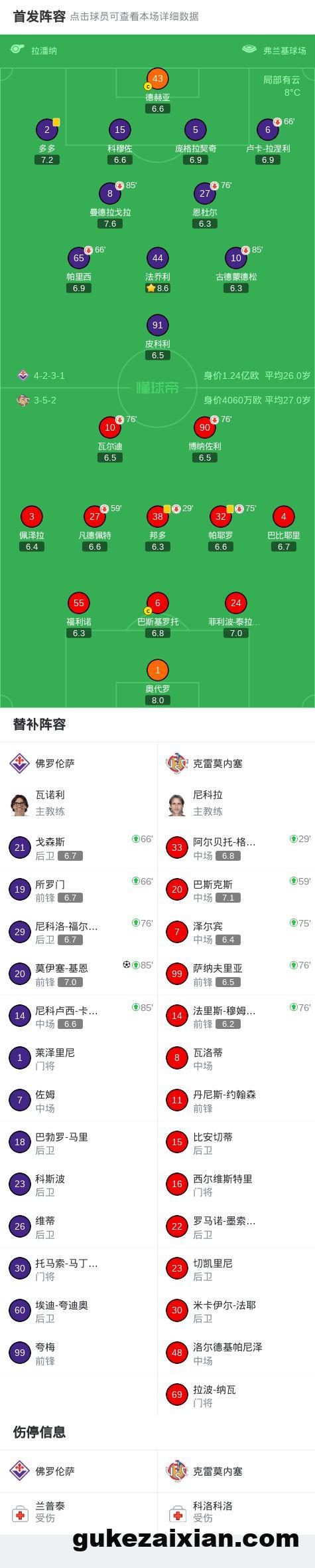第90+2分钟,替补登场的基恩补射破门,佛罗伦萨1-0领先!