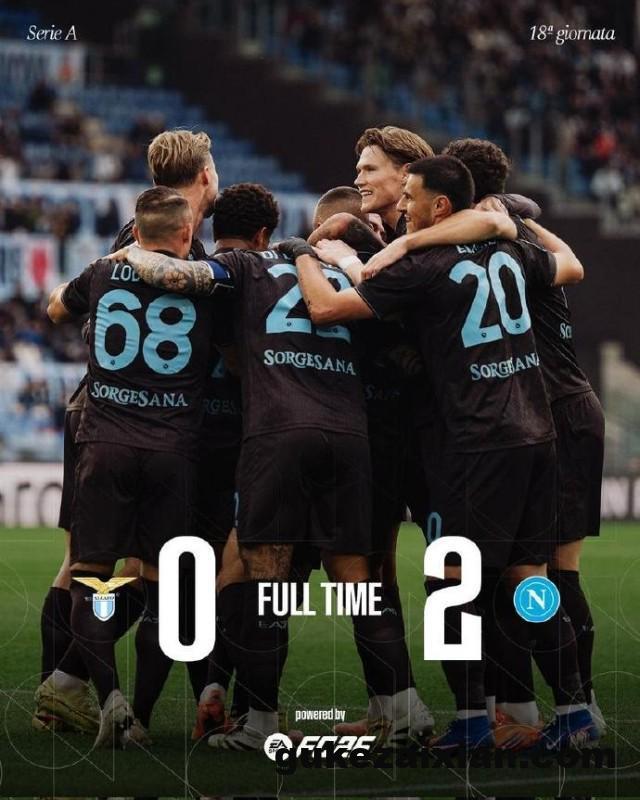 意甲第18轮,那不勒斯客场2比0战胜萨里的拉齐奥,斯皮纳佐拉第13分钟门前推射先开纪录,拉赫马尼第32分钟定位球头槌再下一城,下半场双方再无纪录。第81分钟,诺斯林铲倒布翁焦耳诺两黄一红下场;第88分钟,马佐基和马鲁希奇发生冲突双双被红牌罚下。那不勒斯获胜后升级积分榜次席,落后AC米兰1分。