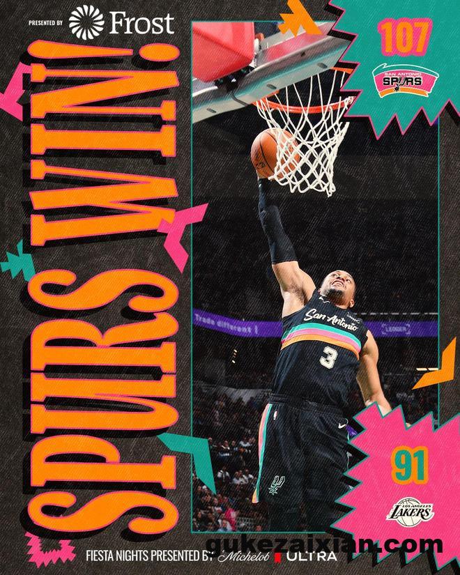 NBA常规赛继续进行,洛杉矶湖人队(23胜12负)结束连胜。虽然东契奇送出38分三双,但约翰逊替补得到27分,文班亚马得到16分和14个篮板,他们率队下半场重新拉开领跑,圣安东尼奥马刺队(26胜11负)在主场以107-91战胜湖人队。马刺队结束2连败,湖人队的3连胜被终结。