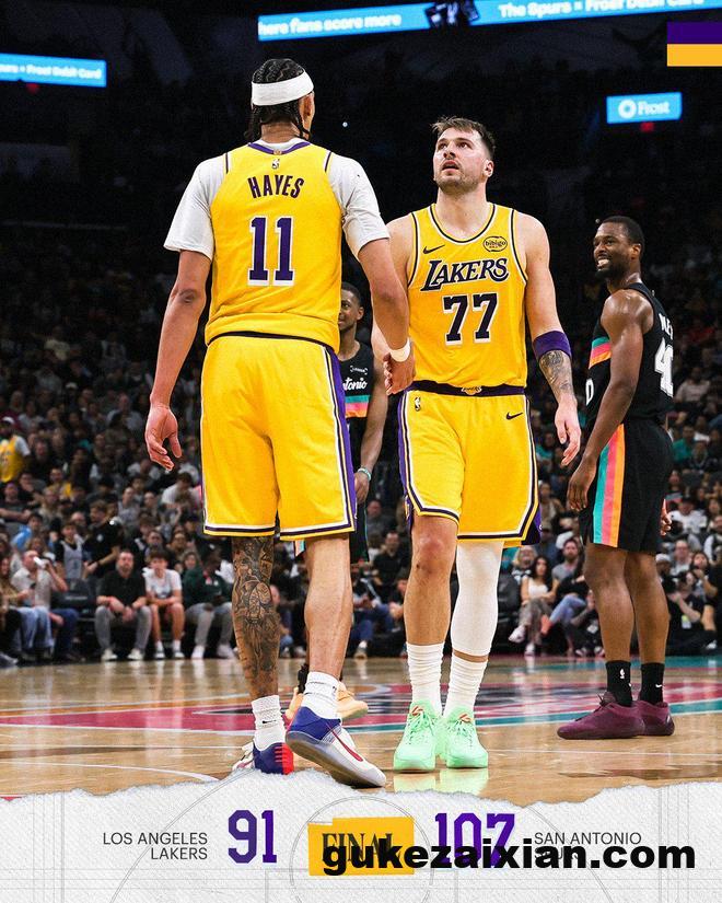 马刺队的约翰逊上半场得到14分;湖人队的东契奇得到22分和7个篮板。