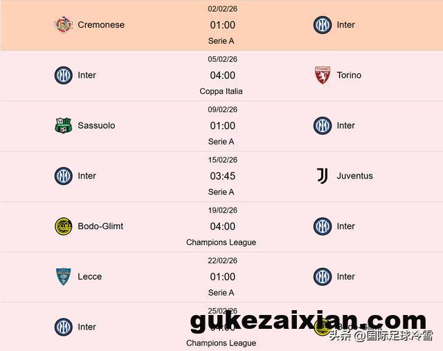 因为此后国米要对阵尤文,要去寒冷的挪威对阵博德闪耀,3月联赛里也将陆续对阵AC米兰、亚特兰大、罗马等队,如果欧冠晋级16强,届时赛程难度直线上升。