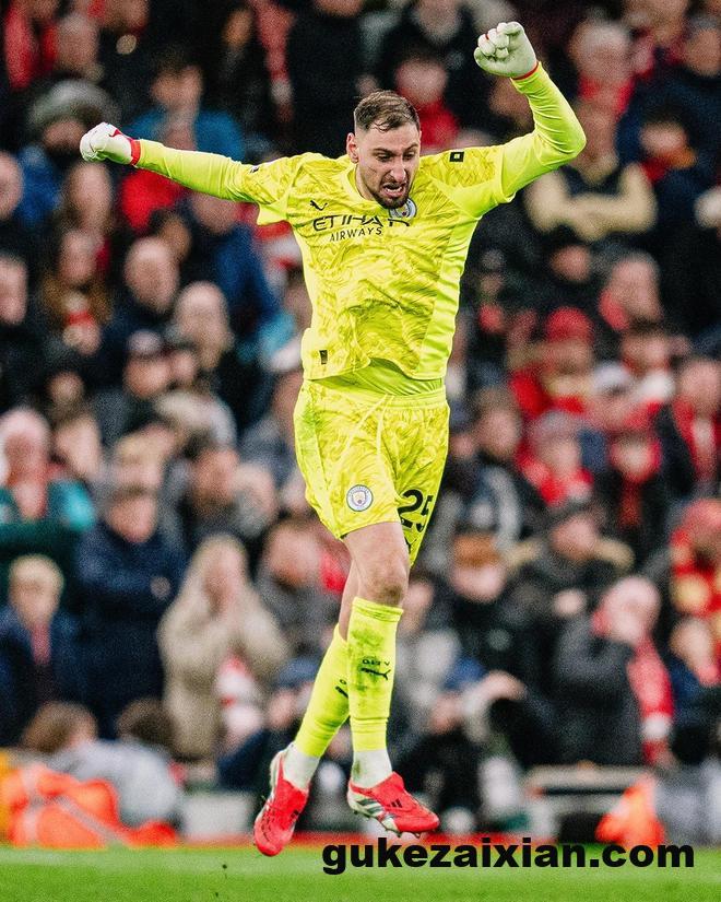 第98分钟,利物浦球员麦卡利斯特禁区外凌空扫射,直奔球门左上角,多纳鲁马飞身单掌将球扑出,曼城差点被绝平!