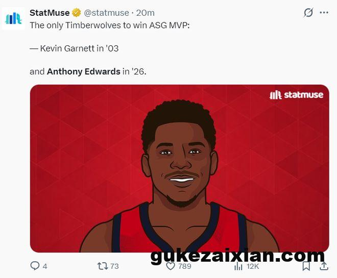 根据数据媒体StatMuse的报道,爱德华兹拿到2026年AMVP是森林狼队史2003年的凯文-加内特后首人。
