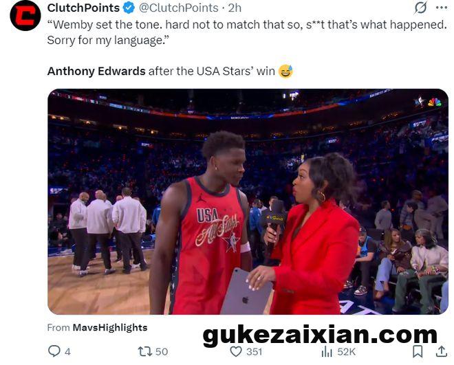 在全明星正赛前,文班亚马的AMVP概率是最高的,爱德华兹只有9%,最终他却带队夺冠拿到了AMVP。