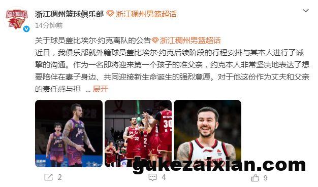 在此,我们衷心祝愿约克的妻子生产顺利、母子平安,祝愿约克在未来的职业生涯中一切顺遂。无论身在何处,浙江永远是你的家!感谢广大球迷、媒体及社会各界对浙江稠州篮球俱乐部的关注与支持。