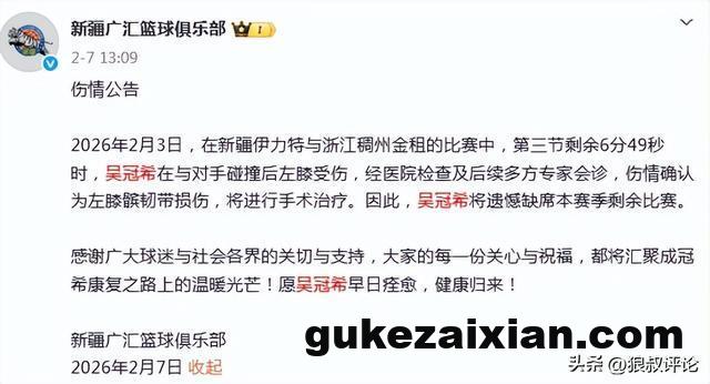 这也是第一阶段窗口期,吴冠希之后,新疆男篮第二名本土球员由于伤病原因,缺席本赛季的剩余比赛。