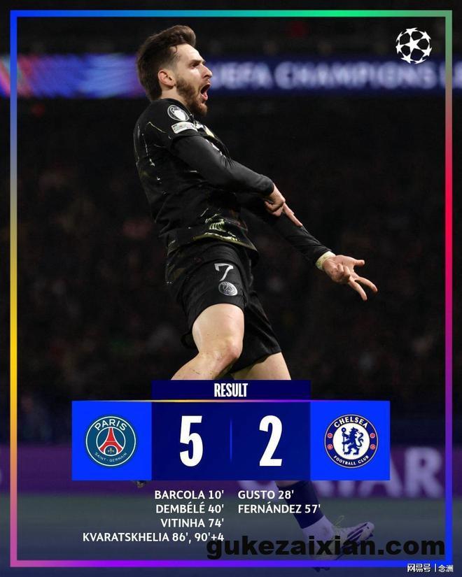 卫冕冠军巴黎圣日耳曼5-2击败切尔西,巴尔科拉首开纪录,登贝莱击中立柱,古斯托扳平比分,登贝莱完成破门,恩佐打进一球,约恩森失误送礼,维蒂尼亚破门,若昂-佩德罗破门但是被判越位在先,克瓦拉茨赫利亚替补双响。