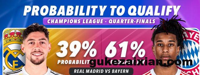 其中,皇马(39%)vs 拜仁(61%)这组对决反倒是拜仁被看好,当然也是八强中最受瞩目的焦点战。尽管首回合皇马3-0大胜曼城晋级,但面对拜仁,他们仅有39%的晋级概率。知名评述员詹俊分析认为:“皇马缺少受伤的库尔图瓦,难度更大了。”