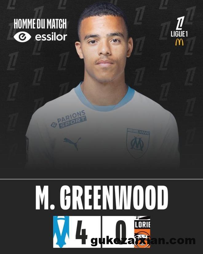 直播吧09月13日讯 法甲第4轮,马赛主场4-0大胜十人洛里昂,格林伍德点射破门+助攻帕瓦尔斩获马赛生涯首球,传射建功的青木被法甲官方评选为全场最佳球员。