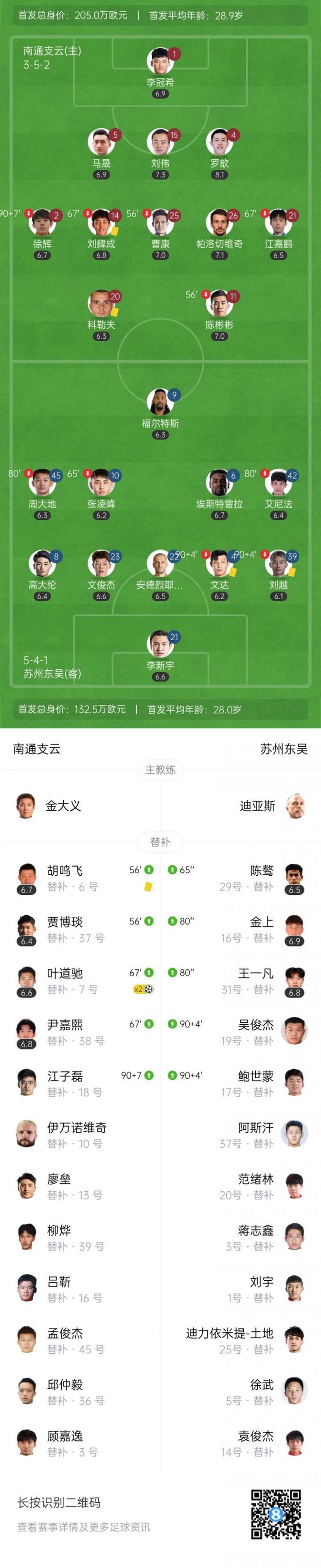 第87分钟,支云外围远射造成门将扑球脱手,叶道驰在乱战中将球打进,南通支云1-0苏州东吴。↓