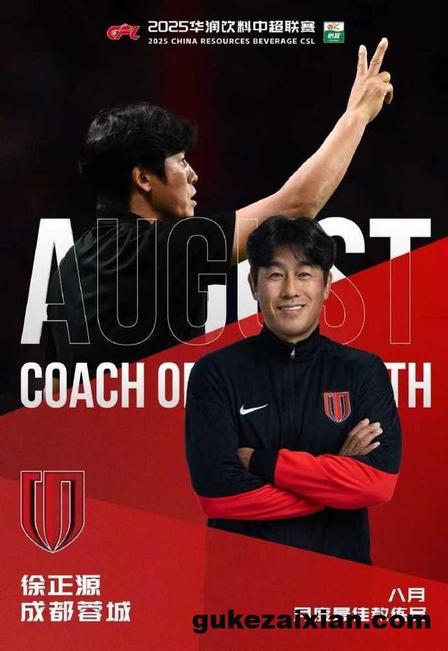 直播吧9月25日讯 中超官方消息,蓉城主帅徐正源当选8月最佳教练。