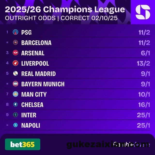 谁是欧冠热门?枪手压倒巴黎巴萨?