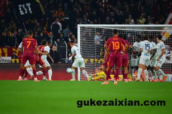 比赛开打后,国米立马取得梦幻开局;第6分钟,巴雷拉中圈附近直接起高球送到前场,罗马防线造越位失败,博尼抽射近角得手,1:0!夏窗以2300万欧元加盟后,博尼已经逐渐成为国米重要轮换角色,9场比赛3场3助攻也已经是张不错的答卷;而且这是国米对阵罗马打进的第300球,蓝黑军团也就此成为了意甲历史上(自1929-30赛季以来)第一支能够面对单一对手打进300粒进球的球队。