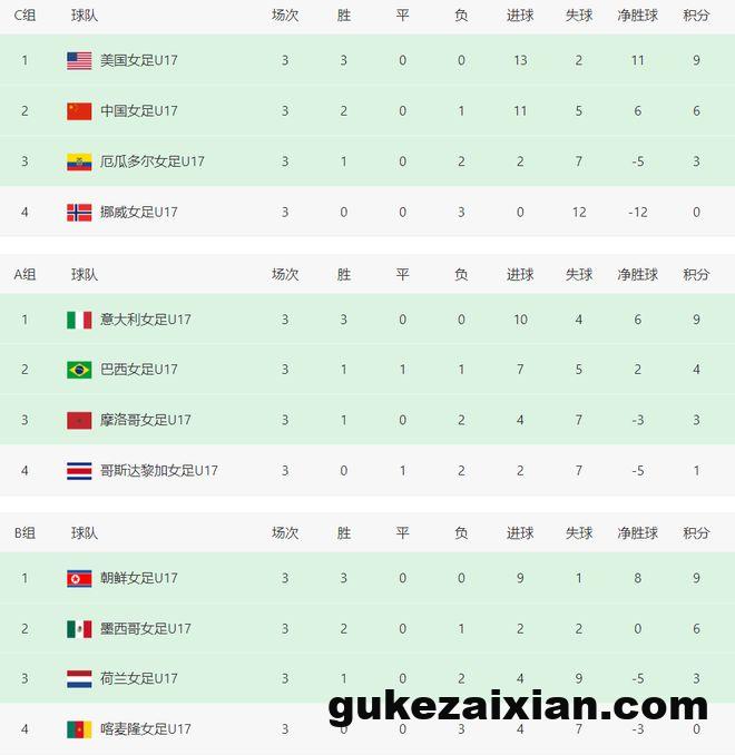 上半区:中国女足VS巴西、加拿大VS赞比亚、朝鲜VS摩洛哥、日本VS哥伦比亚