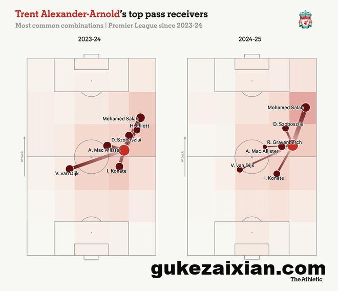不可否认,斯洛特的球队本赛季在进攻组织上不如以往流畅,但上周末有一些积极信号,萨拉赫与队友的配合更加默契——这并不令人意外,因为主教练重新启用了接近上赛季夺冠阵容的首发。