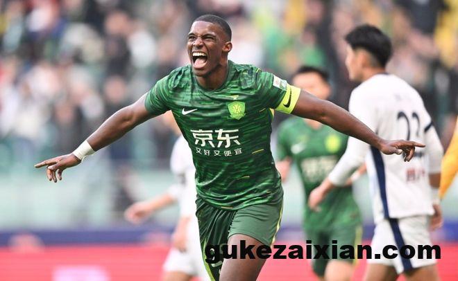第17分钟,林良铭左路挑传禁区,法比奥后点鱼跃头球破门,北京国安1-0梅州客家。