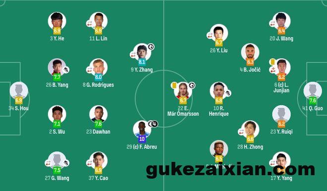 中场:11-林良铭(60’18-方昊)、8-古加(F)(78’17-杨立瑜)、23-达万(F)、37-曹永竞(60’20-王子铭)
