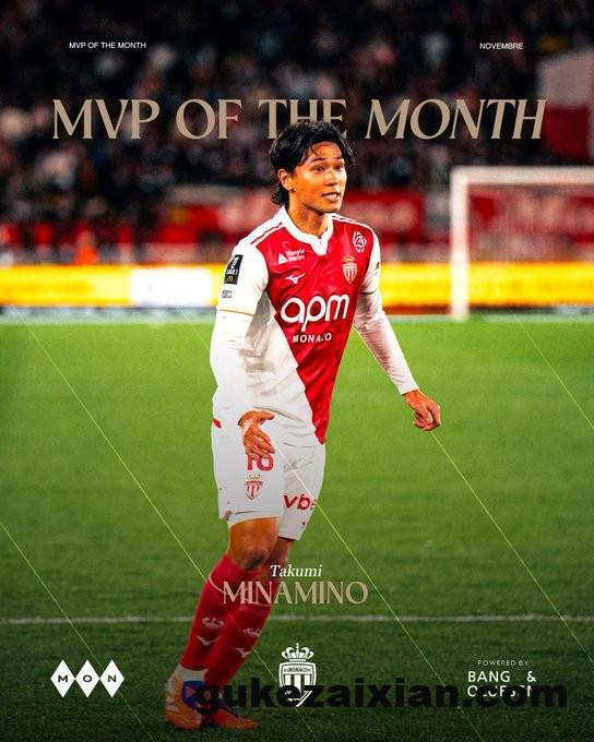 摩纳哥官方宣布,5场打进2球的日本前锋南野拓实当选队内11月最佳球员。