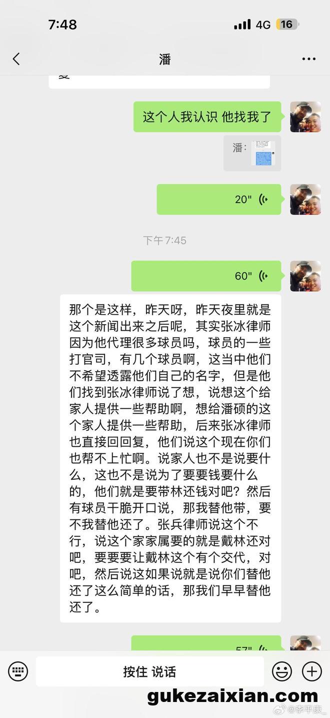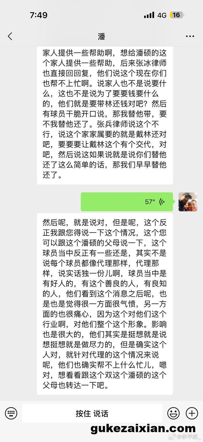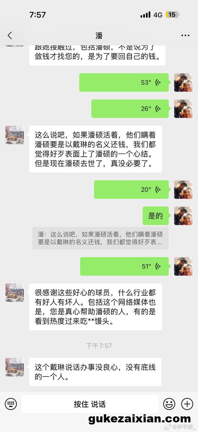 李平康写道:“昨天晚上潘硕去世的消息传出后,有几个球员联系到张冰律师和我,这其中基本都是张律的代理客户,有著名国脚也有自己还被欠薪的小孩。他们询问潘硕家人目前的需要,希望能够匿名为潘硕家人提供经济上的帮助,我们也解释了由于潘硕已经离世,潘家人并不想要捐款,只想要戴琳还钱,在这点上他们确实帮不上忙。还有球员说戴琳差多少钱他来还,这个张律也解释了,冤有头债有主,人家需要的是戴琳还,如果谁还都行我们早就补上了!在这里讲出这个事一方面是想说潘家并没有想借舆论来争取利益的想法,他们只想讨个公道给潘硕一个交代。另一方面就是这件事本身给中国的球员群体带来了巨大的负面影响,各个社媒充斥着针对整个球员群体的批判。但事实上每个领域都有好人坏人,中国足球圈也存在很多的正能量!”