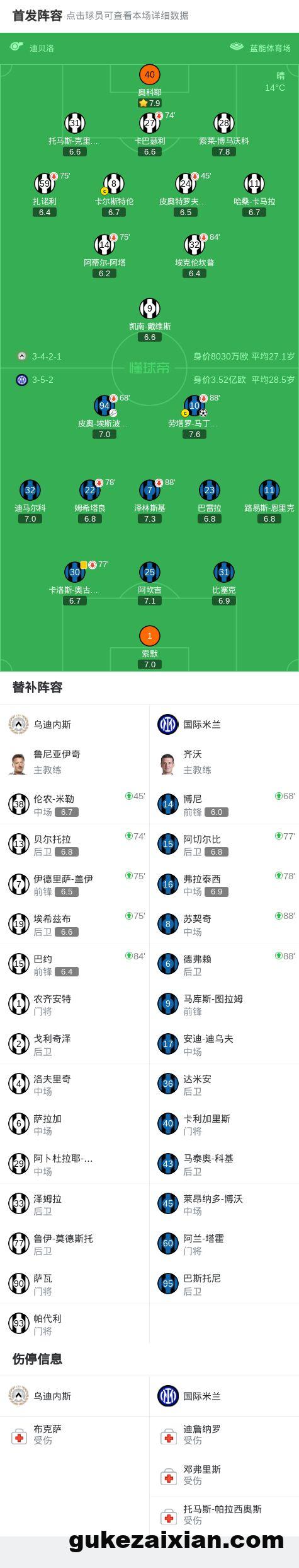 第20分钟,埃斯波西托脚后跟做球,劳塔罗捅射破门,国米1-0乌迪内斯
