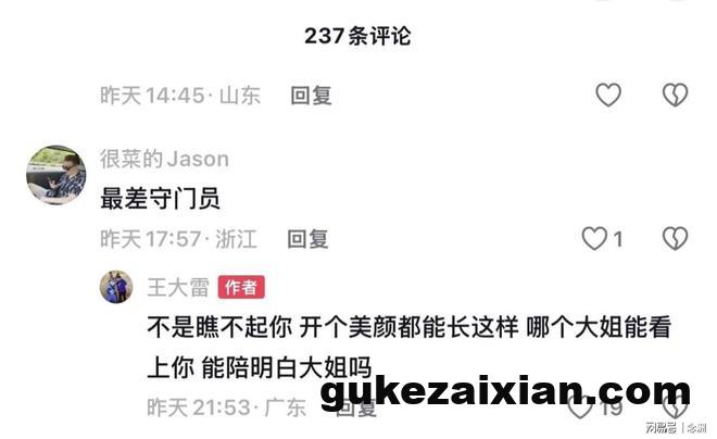 然而,有一名网友评论道:“最差守门员。”没想到王大雷本人直接回复:“不是瞧不起你,开个美颜都能长这样,哪个大姐能看上你,能陪明白大姐吗?”