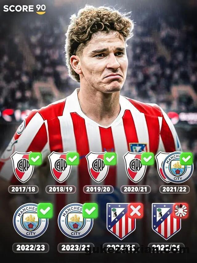 现年26岁的阿尔瓦雷斯,曾是足坛公认的“冠军体质”球员,职业生涯起步便顺风顺水,出道前7年狂揽17座冠军奖杯,2018年至2024年间更是年年捧杯,从未经历过无冠赛季。世界杯冠军、欧冠冠军、英超冠军、美洲杯冠军、南美解放者杯冠军等重量级锦标悉数收入麾下,年纪轻轻便实现了俱乐部与国家队层面的荣誉大满贯,这份夺冠履历在同龄球员中堪称独一档。