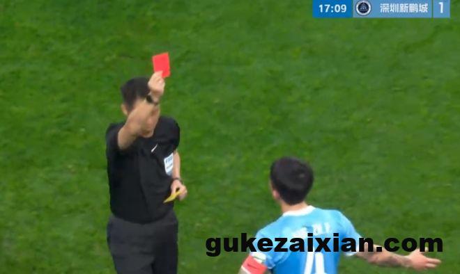 在中超揭幕战里,阿代米为新鹏城取得领先。然而,姜至鹏第15分钟边线肘击韦林顿,主裁判回看慢镜头之后向姜至鹏出示红牌,这是本赛季的第一张红牌。在姜至鹏染红之后,成都蓉城上半场连入3球,逆转了比分。